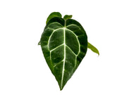 it is a rare and exotic plant species that is native to South America. It has large heart shaped leaves with a velvety texture and a deep green color. The leaves have prominent, silvery white veins that contrast beautifully with the dark green background.