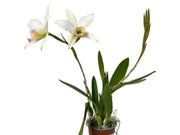 This exceptional semialba form of Laelia anceps represents the distinguished 'Ileana' clone, celebrated for its pristine white petals and sepals contrasted by a vibrant purple-magenta lip with intricate patterns, making it an excellent choice for collectors.