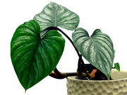 It is stunning aroid, creeping and terrestrial plant prized for its large, heart-shaped, bright green leaves that feature unique silvery-green mottling and a heavily textured surface, making it an excellent statement plant for collectors.
