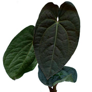 It is a captivating hybrid known for its dark and dramatic appearance. Its glossy, heart-shaped leaves are primarily black with a velvety texture, creating a striking contrast with its bright green veins. This unique coloration adds a touch of elegance and mystery to indoor spaces. To care for 'Raven Soul,' provide bright, indirect light and maintain consistent moisture in its well-draining soil. Proper humidity levels and occasional misting are essential for its well-being. Regular fertilization during the growing season and keeping an eye out for pests will help ensure this Anthurium variety's continued health and stunning visual impact.
