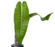 Anthurium veitchii is a striking and sought-after plant species renowned for its distinctive foliage and tropical allure. This species, belonging to the Anthurium genus, is native to the rainforests of South America, particularly regions like Colombia and Ecuador. What sets Anthurium veitchii apart are its impressive, elongated leaves that display an unusual and visually captivating form. The leaves are deeply lobed and resemble the shape of a bird's nest, with a stunning combination of dark green coloration and prominent white or silvery veins that create an eye-catching contrast. This unique foliage gives Anthurium veitchii a sculptural and architectural quality, making it a prized choice among plant enthusiasts and collectors. While the plant's flowers are relatively inconspicuous compared to its striking leaves, they still add to its overall appeal. Anthurium veitchii thrives in warm and humid conditions, making it suitable for indoor cultivation in controlled environments. Its extraordinary foliage and tropical elegance make it a cherished addition to botanical collections and interior spaces, where it can serve as a captivating focal point and conversation starter.