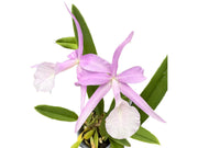 This exceptional hybrid produces elegant flowers with soft lavender-purple petals and sepals contrasting beautifully with white lips adorned with delicate pink markings.
